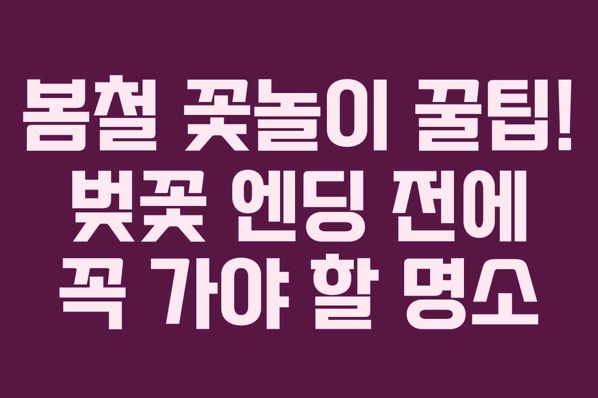 봄철이 되면 많은 사람들은 벚꽃을 기다리며 설렘을 느낍니다. 벚꽃이 만개한 이 시기에 꽃놀이를 즐기기 위해 어디로 가야 할지 고민하는 분들을 위해 특별한 명소들을 추천합니다. 이곳은 여러분의 봄 나들이를 더욱 특별하게 만들어 줄 것입니다.