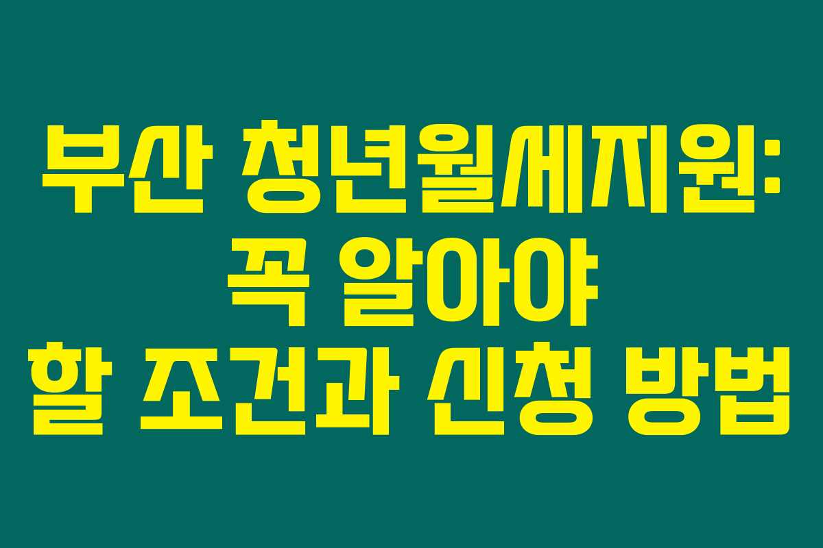 부산 청년월세지원 제도를 활용하기 위해서는 우선 몇 가지 조건을 충족해야 합니다. 제가 직접 체크해본 바로는, 이렇게 정리해볼 수 있습니다.