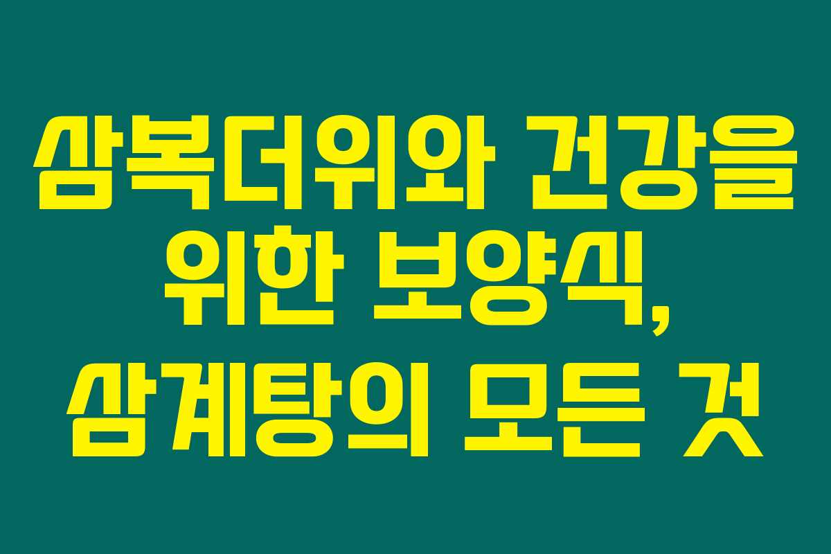 제가 알아본 바로는, 삼복더위가 다가오고 그에 따라 사람들은 다양한 보양식으로 체력을 보충해야 한다고 해요. 특히, 삼계탕은 여름철 대표적인 보양식으로 그 인기가 높고, 여러 맛집이 존재하죠. 아래를 읽어보시면 삼복더위의 의미부터 보양식으로서의 삼계탕까지, 그리고 삼계탕 레시피와 맛집에 대한 정보까지 알차게 담아볼게요.