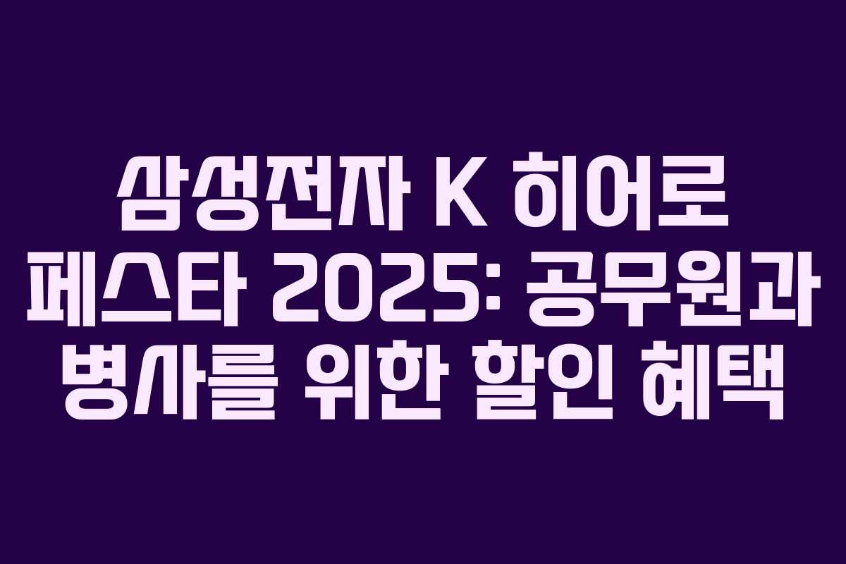 삼성전자가 국가 안보와 국민 안전을 위해 헌신하는 공무원과 군인을 위해 마련한 K-히어로 페스타 2025가 다가옵니다. 이번 행사는 할인 폭과 대상 범위를 더욱 확대하여, 많은 분들에게 감사의 마음을 전하는 기회가 될 것입니다.