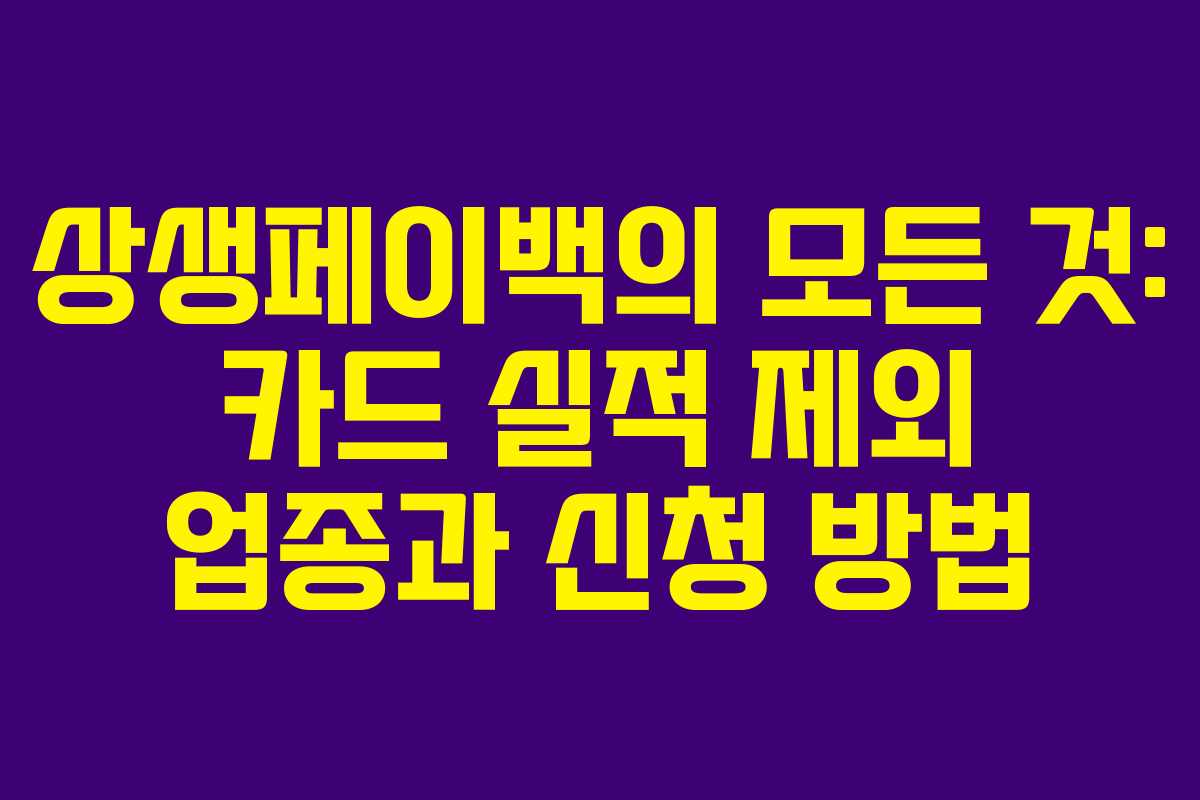 상생페이백은 2025년 9월부터 시행되는 프로그램으로, 월평균 카드 소비액이 증가한 경우 20%를 온누리 상품권으로 돌려받을 수 있는 기회를 제공합니다. 이 글에서는 상생페이백의 신청 방법과 카드 실적 불인정 업종에 대해 자세히 알아보겠습니다.