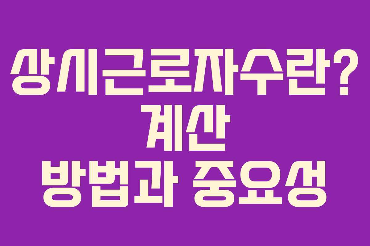 상시근로자수는 근로기준법에서 중요한 기준으로, 사업장의 근로자 수를 판단하는 데 필수적인 요소입니다. 오늘은 상시근로자수가 무엇인지, 어떻게 계산하는지에 대해 알아보겠습니다.