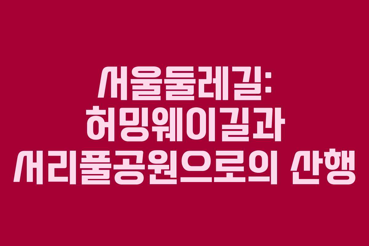 서울둘레길은 도심에서 자연을 즐기고 건강을 챙길 수 있는 최적의 장소다. 허밍웨이길과 서리풀공원은 특히 매력적인 산행 코스로, 많은 사람들이 이 경로를 통해 힐링의 시간을 갖고 있다. 2026년에도 이러한 매력은 더욱 부각될 것으로 기대된다. 매일매일 다른 풍경과 기분 좋은 경험을 통해 삶의 질을 높일 수 있는 이 길을 많은 이들이 찾기를 바란다.