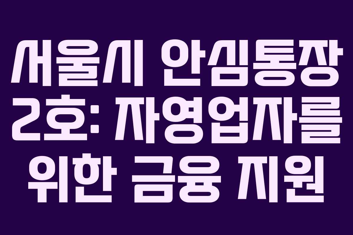 서울시는 2025년 8월 28일 오전 9시부터 자영업자를 위한 마이너스통장 ‘안심통장 2호’를 2,000억 원 규모로 공급합니다. 이번 통장은 비대면으로 신청할 수 있으며, 자영업자의 현금 흐름을 지원하는 중요한 금융 상품입니다.
