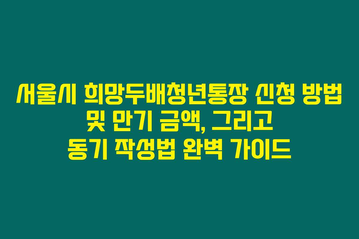 서울시 희망두배청년통장에 대해 궁금하시다면 주목해주세요! 만 18세에서 34세까지의 청년이 본인의 저축액의 2배로 최대 1080만 원을 받을 수 있는 기회가 있습니다. 혹시 아직 신청 방법이나 동기 작성이 막막하게 느껴지셨나요? 아래를 읽어보시면 자세한 신청 방법과 함께 효과적인 동기 작성법을 모두 정리해드릴게요.