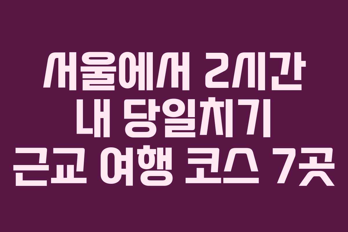 - 경제성과 편의성을 모두 갖춘 당일치기 근교 여행