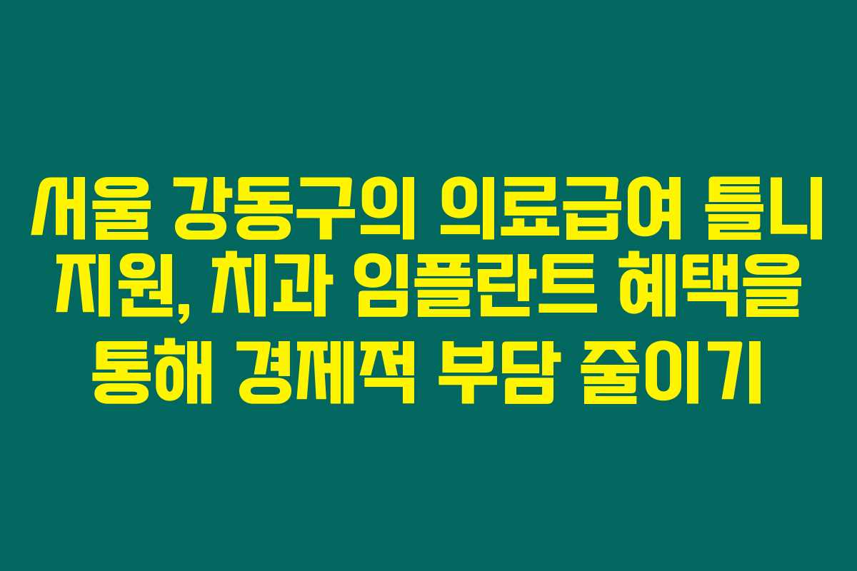 제가 직접 알아본 바로는, 서울시 강동구에서 시행하는 의료급여 틀니 지원은 65세 이상의 노인들에게 필수적인 혜택이 되어가고 있습니다. 이 서비스는 치아 문제로 고통받는 노인들에게 경제적 부담을 경감하고, 건강한 치아를 유지할 수 있도록 도와준답니다. 아래를 읽어보시면, 지원 내용과 신청 방법, 혜택에 대해 더 자세히 알아볼 수 있습니다.