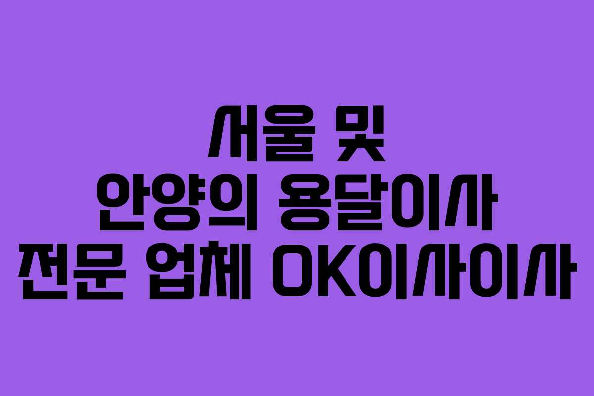 서울과 안양 지역에서 저렴한 용달이사 서비스를 찾고 계신다면, OK이사이사를 추천합니다. 이 업체는 원룸 이사 및 소규모 이사에 최적화된 서비스를 제공하여 많은 고객들의 만족을 얻고 있습니다.