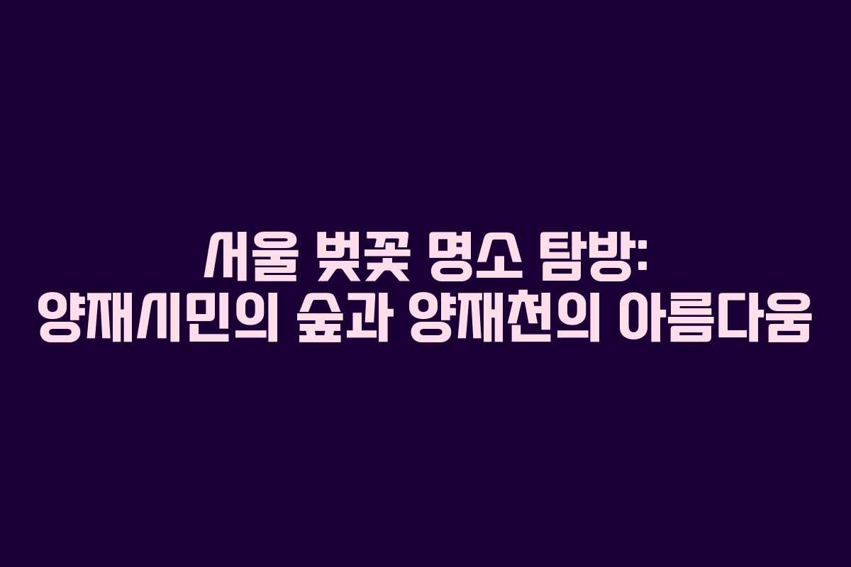 서울의 벚꽃 시즌이 찾아왔습니다. 2026년 기준으로 벚꽃은 만개하였고, 사람들은 이 아름다운 경관을 감상하기 위해 주말마다 나서고 있습니다. 특히, 양재시민의 숲과 양재천은 서울에서 벚꽃을 즐기기에 최적의 장소 중 하나입니다. 이곳에서의 경험은 매년 많은 이들에게 기억에 남는 순간이 되죠. 이번 글에서는 양재시민의 숲과 양재천에서 벚꽃을 즐기는 방법에 대해 알아보겠습니다.