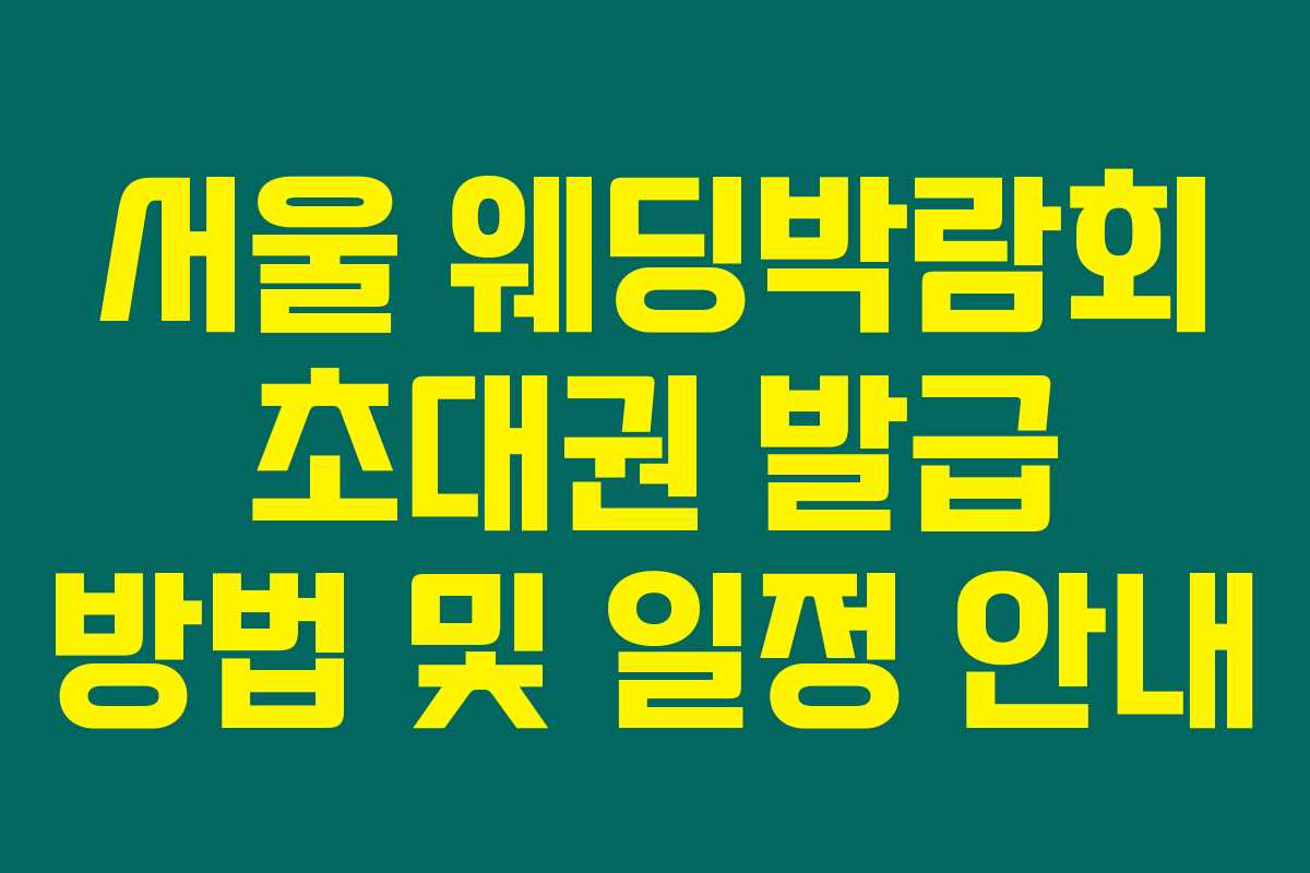 서울 웨딩박람회 초대권 발급 방법 및 일정 안내