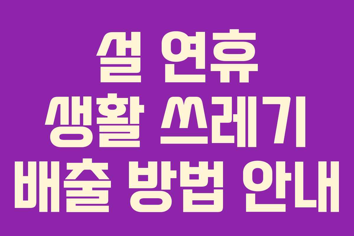 설 연휴가 다가오면서 많은 가정에서 생활 쓰레기 배출에 대한 고민이 커지고 있다. 특히, 설 명절 동안 생활 쓰레기 수거가 중단되기 때문에 미리 준비하는 것이 중요하다. 이 글에서는 2026년 설 연휴 기간 동안의 생활 쓰레기 배출 방법 및 유의사항을 안내한다.
