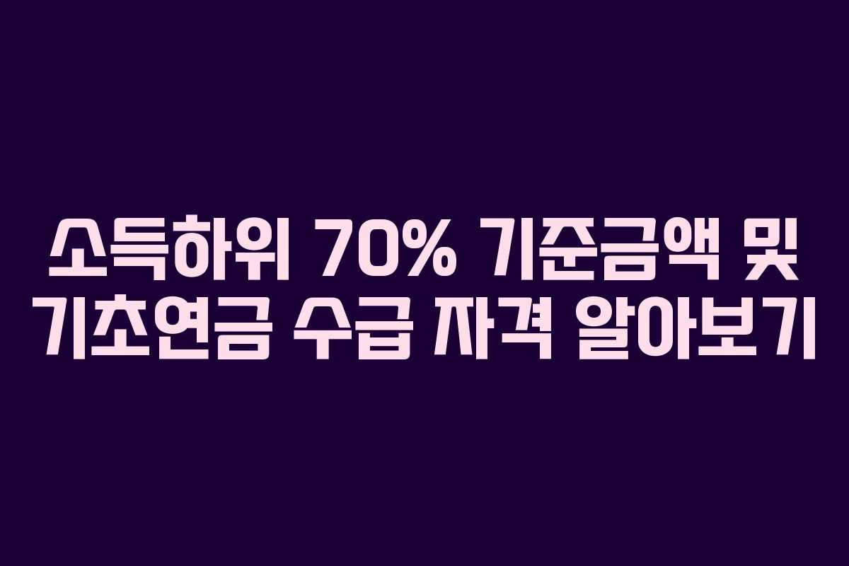 소득하위 70%란 국내 전체 소득 가구 중에서 소득이 0~70%에 해당하는 가구를 의미합니다. 이 집단에 속하는 사람들은 기초연금 수급 자격을 갖추게 됩니다. 기초연금은 노후 생활 안정에 큰 도움이 되는 제도이므로, 소득하위 70%에 해당하는 가구는 이 연금의 혜택을 누릴 수 있는 조건을 충족하게 됩니다.