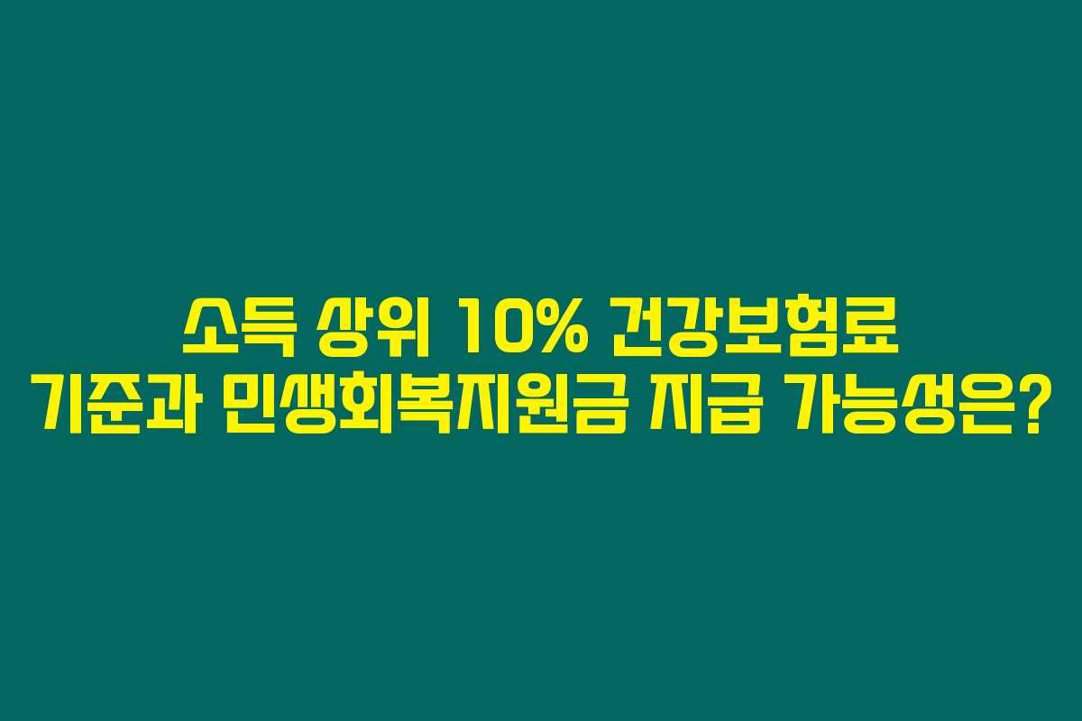 지역가입자: 소득과 재산이 함께 반영되는 지역가입자의 경우, 월 45만 원에서 51만 원 이상의 보험료를 납부하는 것이 소득 상위 10%의 기준이 될 수 있습니다.