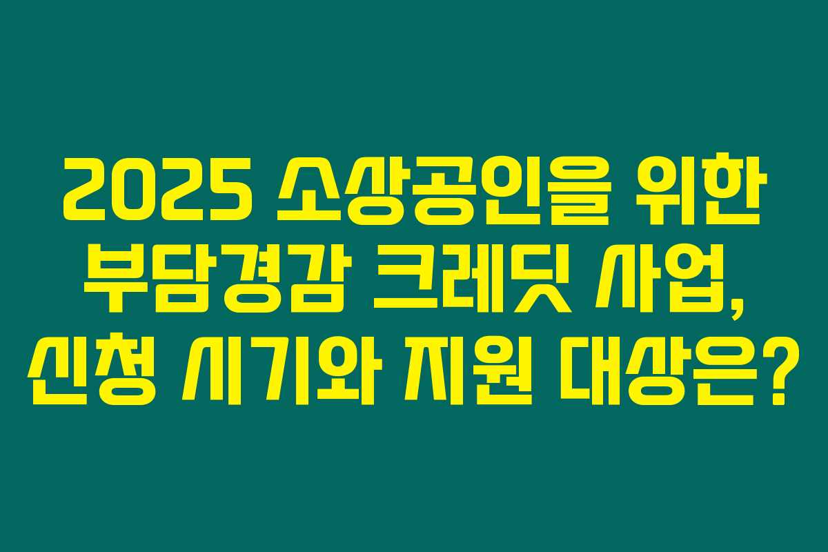 2025 소상공인을 위한 부담경감 크레딧 사업, 신청 시기와 지원 대상은?
