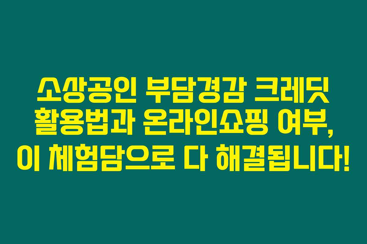 소상공인 여러분, 부담경감 크레딧에 대해 궁금하신가요? 공공요금 및 보험료의 부담을 덜어주는 이 제도를 통해 50만원을 지원받을 수 있지만, 온라인쇼핑에서는 사용이 불가하다는 사실 알고 계셨나요? 아래를 읽어보시면 이 크레딧 사용처와 활용 전략에 대한 고민을 한 방에 해결할 수 있을 거예요.