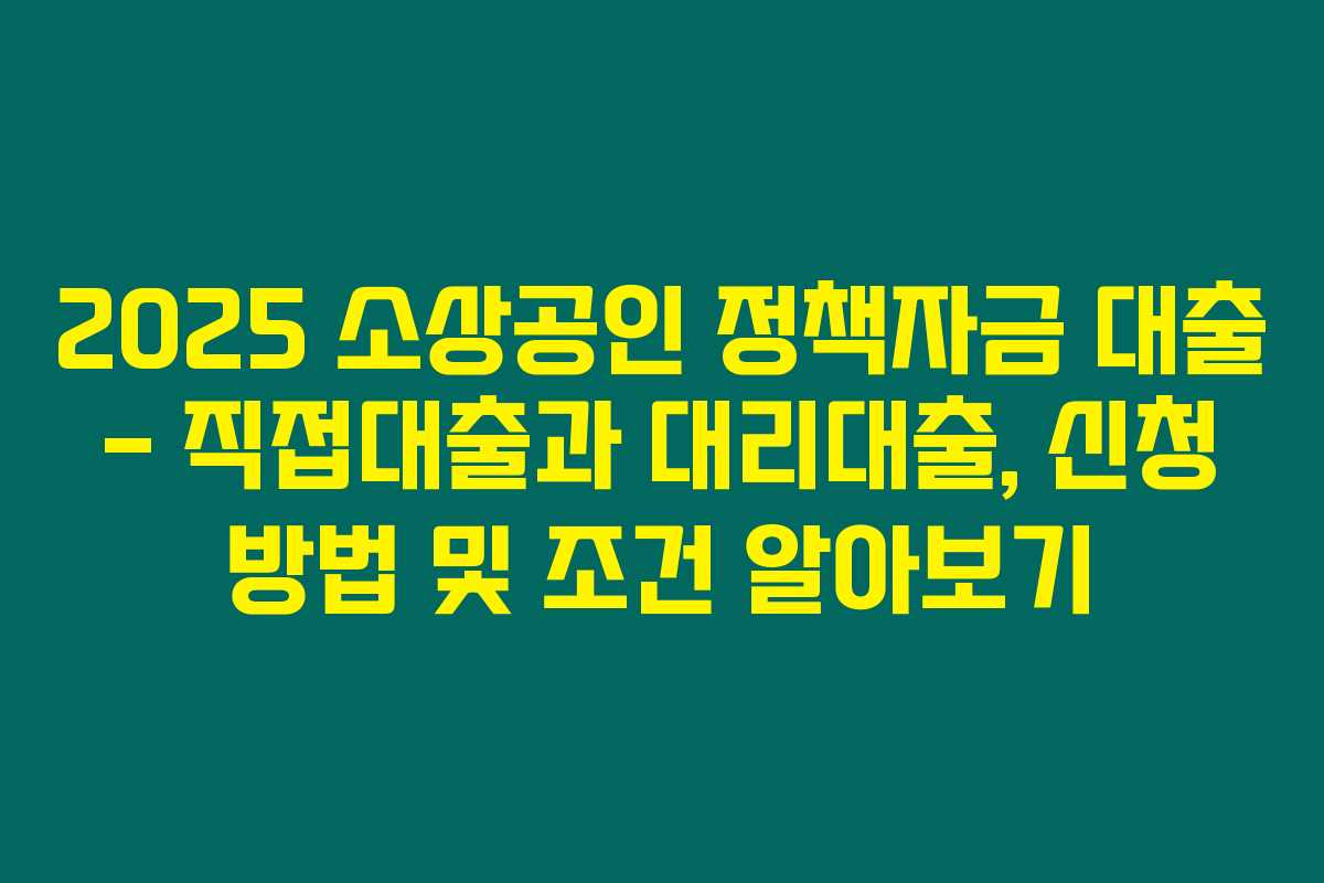 정책자금은 크게 직접대출과 대리대출로 나뉘는 방식입니다. 각 방식마다 신청 절차와 조건이 다르니, 자신의 상황에 맞는 방식으로 신청하는 것이 중요합니다.