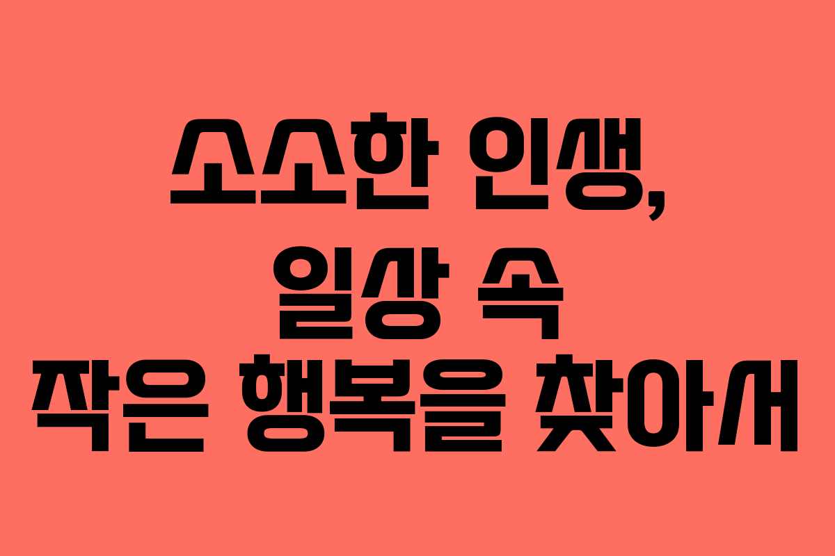 소소한 인생은 우리가 살아가는 일상의 작은 순간들을 소중히 여기고, 그 속에서 느끼는 감정과 생각들을 나누는 공간입니다. 삶의 크고 작은 이야기들 속에서 느끼는 감동은 때로는 사소하지만, 그 사소함이 모여 우리 삶의 의미를 더욱 깊게 만들어 줍니다. 이제부터는 2026년 현재 상황을 반영하여, 삶의 작은 순간들을 더욱 의미 있게 즐기는 방법을 살펴보겠습니다.