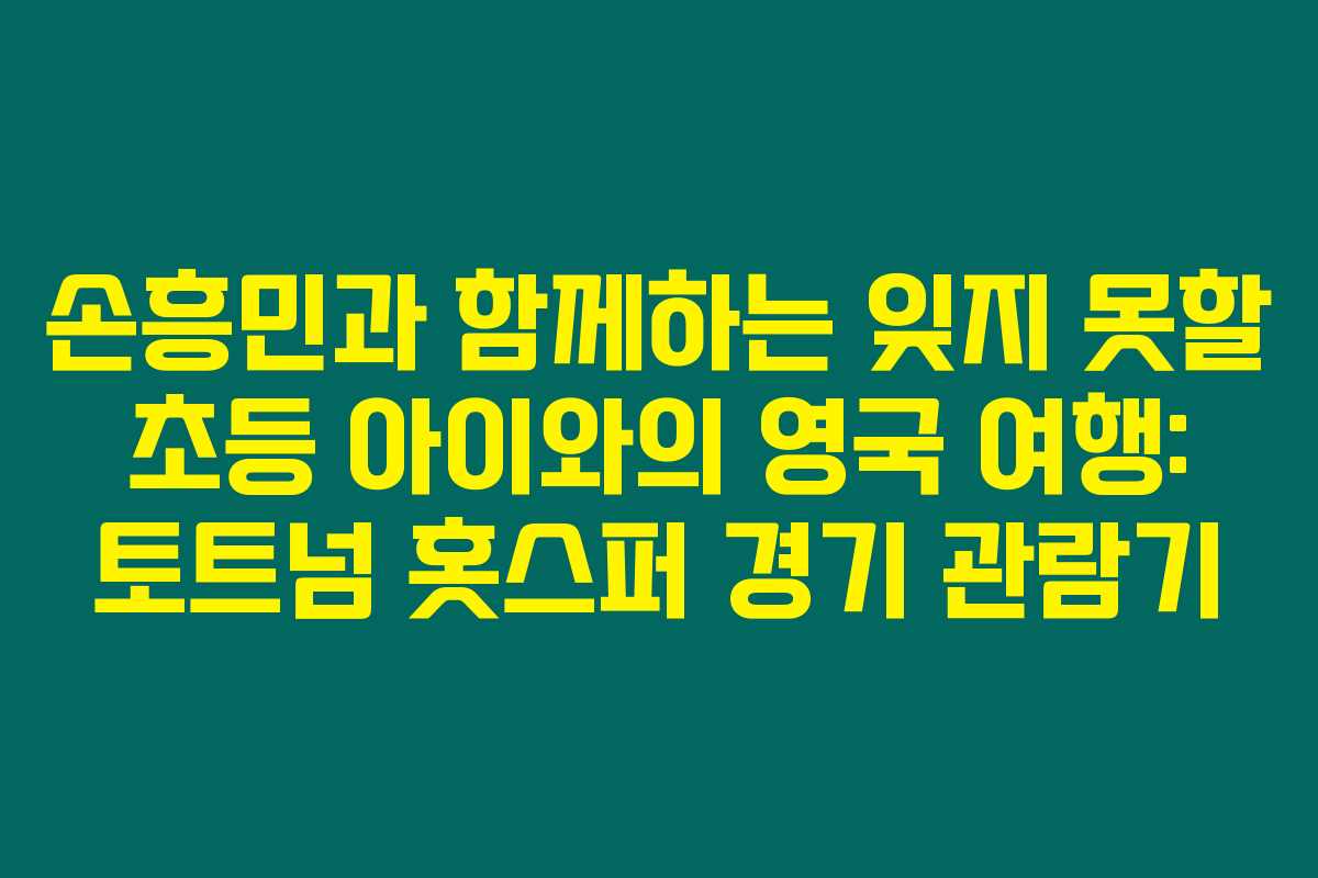 바쁘게 지내던 일상 속에서 손흥민 선수와 함께한 특별한 경기를 통해 가족과의 소중한 시간을 보낼 수 있었습니다. 토트넘 홋스퍼의 경기를 통해 우리는 함께 응원을 외치고, 진정한 축구 팬으로서의 경험을 쌓았지요. 여러분도 영국 여행 시 꼭 한 번의 멋진 경기를 관람해보세요.