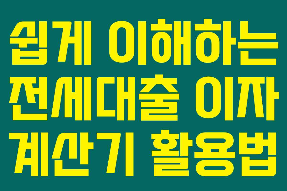 전세 대출을 고려할 때, 이자 계산이 중요하다는 사실 알고 계신가요? 제가 직접 경험해본 결과로는, 전세대출 이자 계산기 활용이 매우 유용하다는 것을 알게 되었답니다. 이 계산기를 통해 내가 상환해야 할 금액을 명확히 파악할 수 있는 점이 특히 좋았어요. 아래를 읽어보시면 전세대출을 계획적으로 활용할 수 있는 팁을 알아보실 수 있습니다.