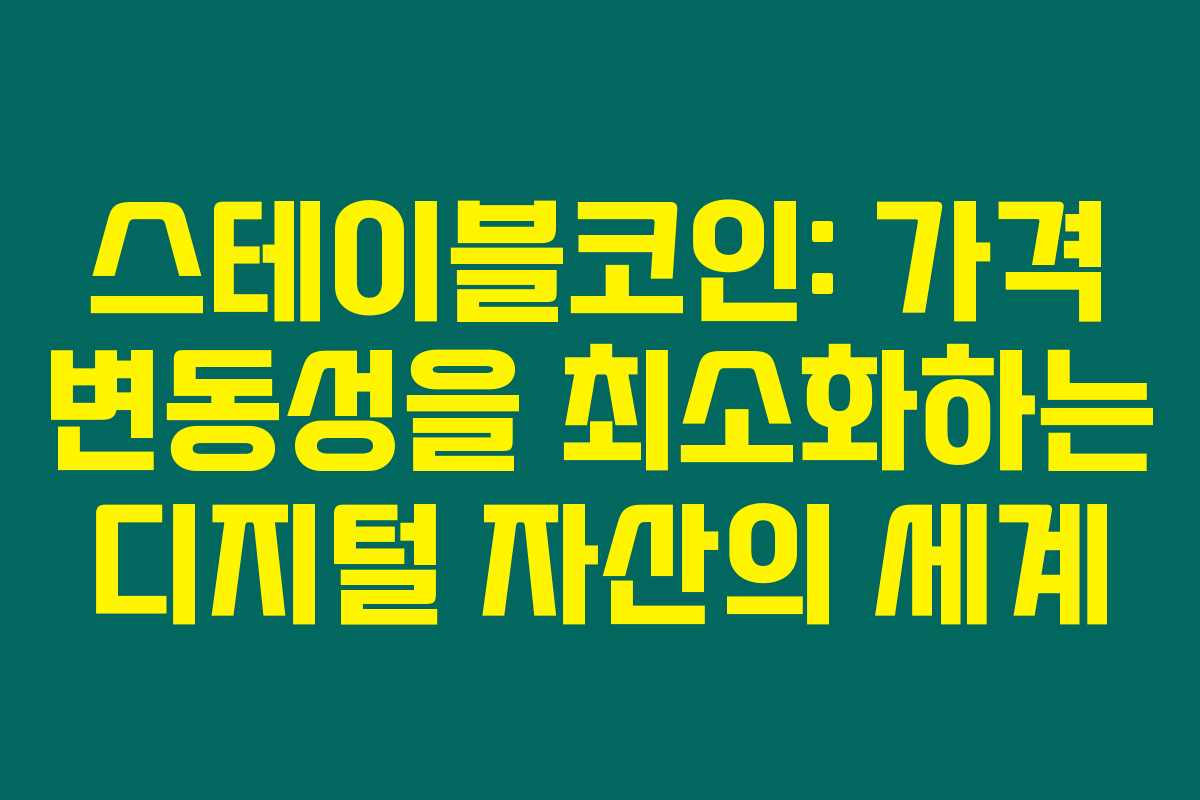 스테이블코인: 가격 변동성을 최소화하는 디지털 자산의 세계