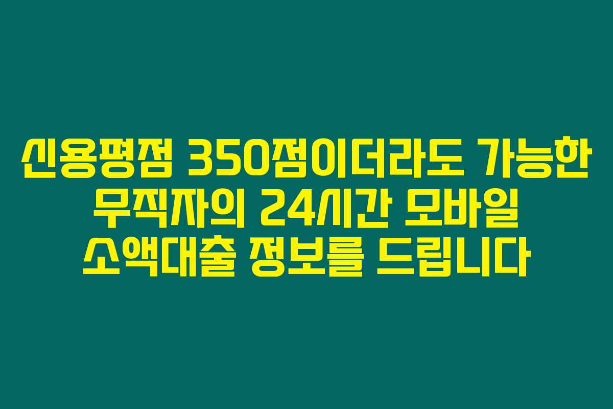 제가 직접 리서치한 바로는, 신용점수가 낮아도 모바일을 통해 빠르게 소액대출을 받을 수 있는 방법이 여러 가지 있다는 사실입니다. 특히, 개인신용평점이 350점인 무직자분들에게 유용한 정보와 상품을 정리해 보았습니다. 아래를 읽어보시면 자신에게 맞는 소액대출 상품을 쉽게 찾을 수 있을 거예요.