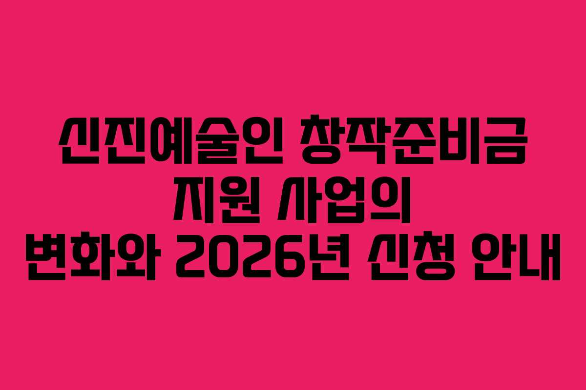 - 2026년 신진예술인 창작준비금 지원 사업 현황과 주요 변경 사항