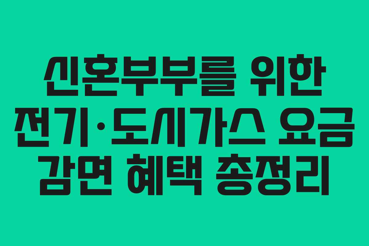 신혼부부는 초기 가계 부담을 줄이기 위해 전기 및 도시가스 요금 감면 혜택을 받을 수 있습니다. 본 글에서는 신혼부부가 해당 감면 혜택을 받을 수 있는 조건 및 신청 방법을 정리합니다.