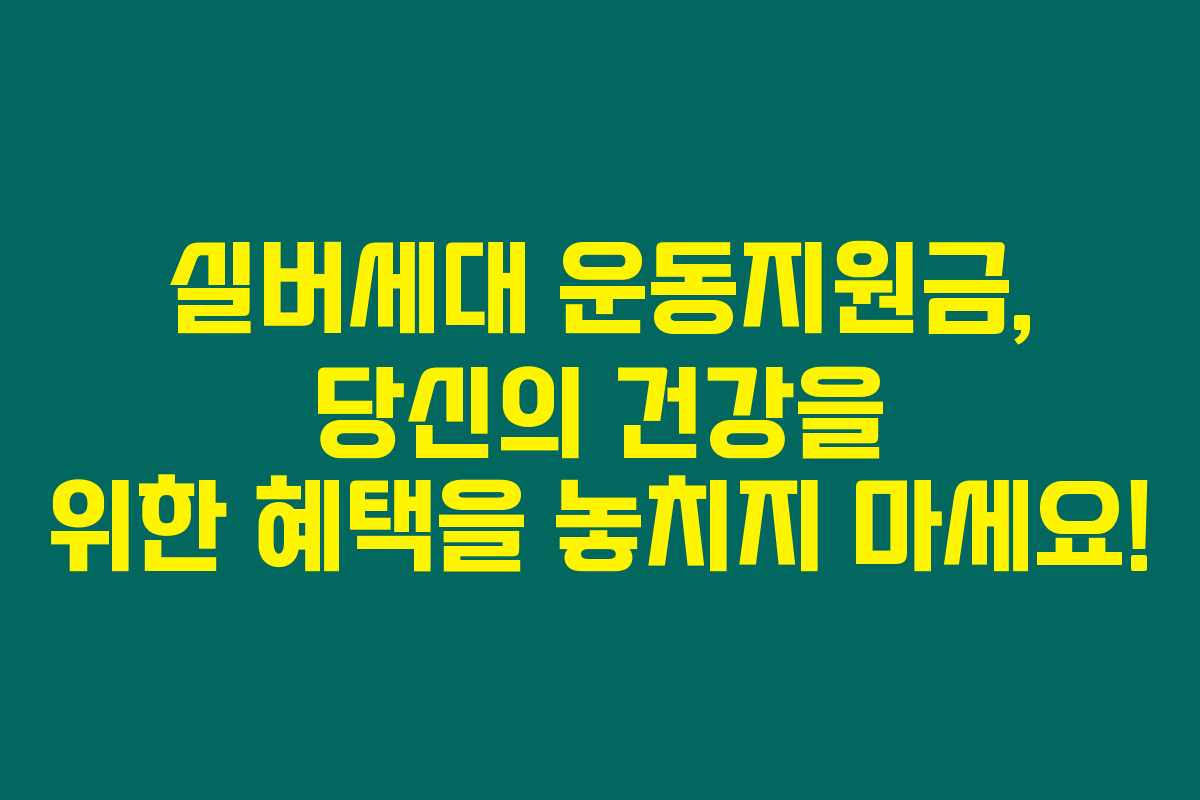 어르신의 건강은 정말 중요해요! 만약 운동으로 하루하루의 삶의 질을 높이고 싶다면 실버세대 운동지원금에 대해 알아보셔야 해요. 운동을 위해 필요한 비용이 부담스럽다면 이렇게 지원금을 적극 활용해보세요. 어르신들에게 운동지원금이 얼마나 유용한지 아시나요? 아래를 읽어보시면 그 비밀을 알게 될 거예요!