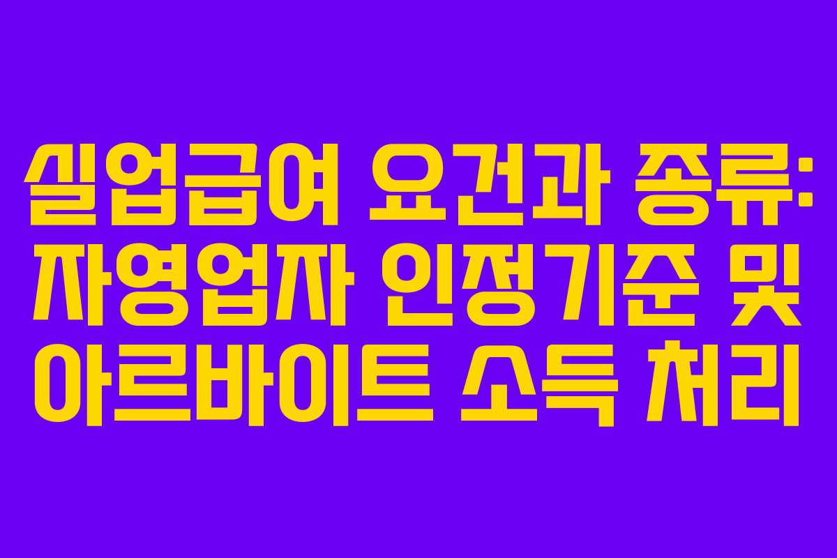 실업급여 요건과 종류: 자영업자 인정기준 및 아르바이트 소득 처리