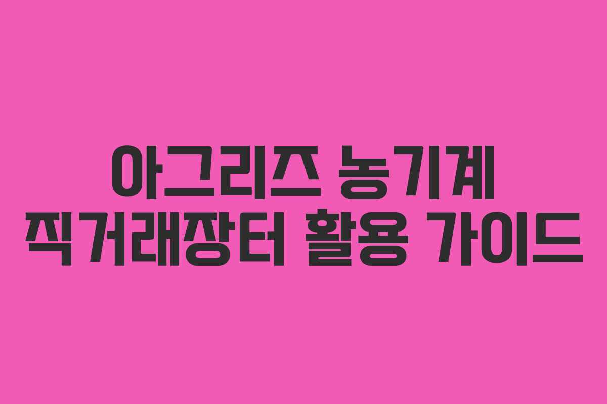 농업에 종사하시는 분들에게 있어서 농기계는 필수적인 요소입니다. 하지만 고가의 농기계 구매는 경제적 부담이 크기 때문에 중고 거래를 고려하는 경우가 많습니다. 이에 따라 아그리즈의 중고 농기계 직거래장터를 활용하는 방법과 주의사항에 대해 알아보겠습니다. 본 가이드는 2026년 기준으로 최신 정보와 함께 중고 농기계 거래에 대한 실질적인 통찰을 제공합니다.