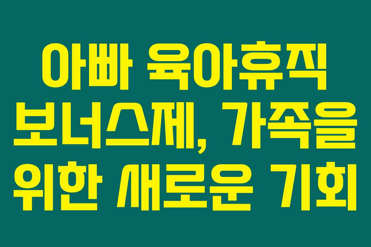 아빠 육아휴직 보너스제는 가정의 새로운 기회를 열어줍니다. 아빠가 육아에 참여할 때 가족 간의 유대가 깊어지고, 이를 통해 자녀의 발달에도 긍정적인 영향을 미칠 수 있습니다. 모든 아빠들이 이 제도를 통해 더욱 의미 있는 시간을 가질 수 있기를 바랍니다.