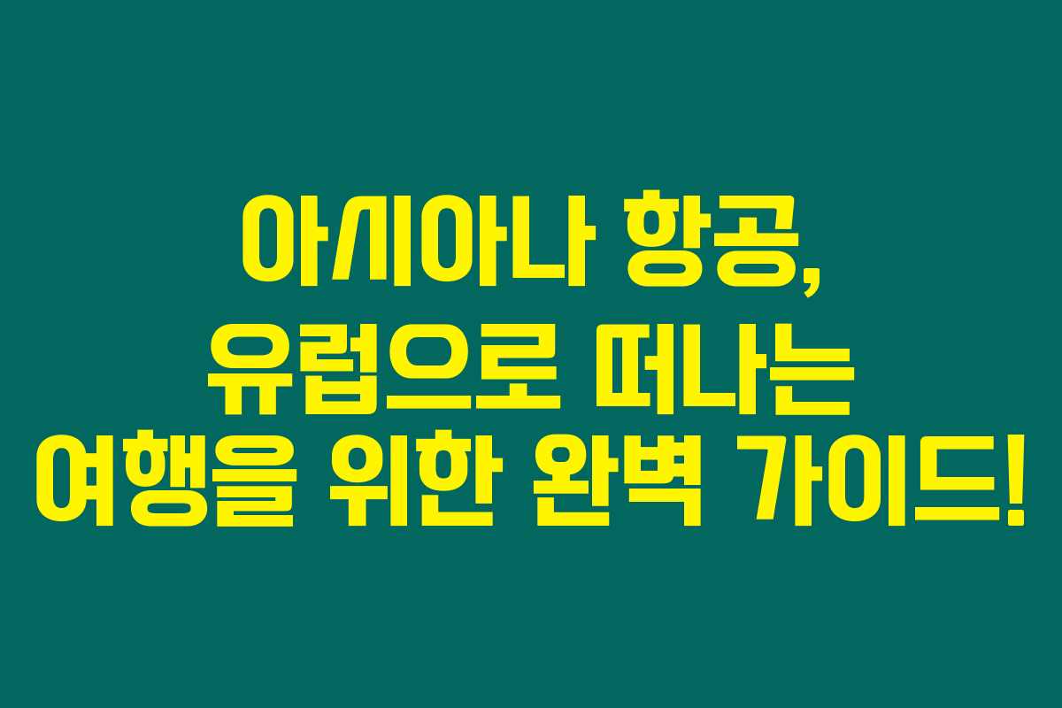 아시아나 항공, 유럽으로 떠나는 여행을 위한 완벽 가이드!