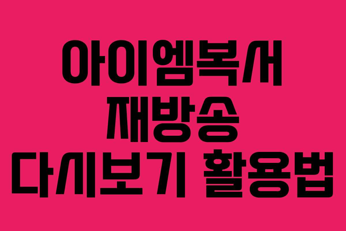 아이엠복서 재방송 다시보기 체크리스트와 팁