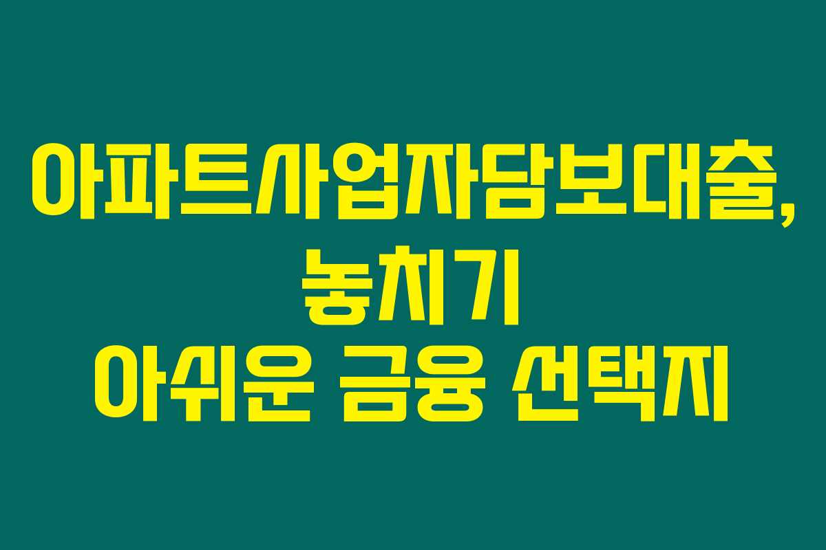- 1. 아파트사업자담보대출이란 무엇인가요?