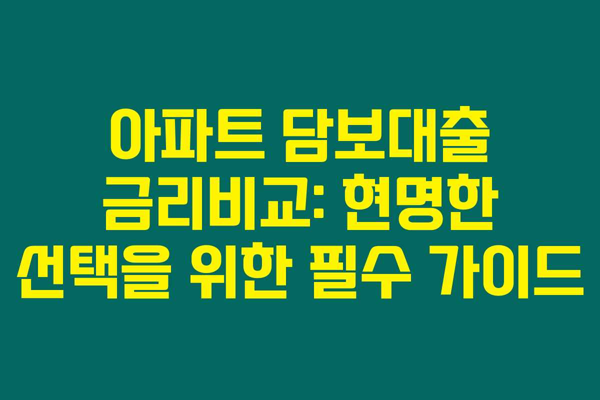 아파트 담보대출은 정말 중요한 결정이니 만큼, 잘 알아보시고 현명한 선택하시길 바랍니다!