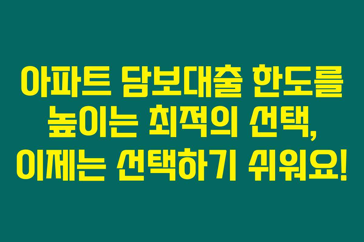 아파트 담보대출 한도를 높이는 최적의 선택, 이제는 선택하기 쉬워요!