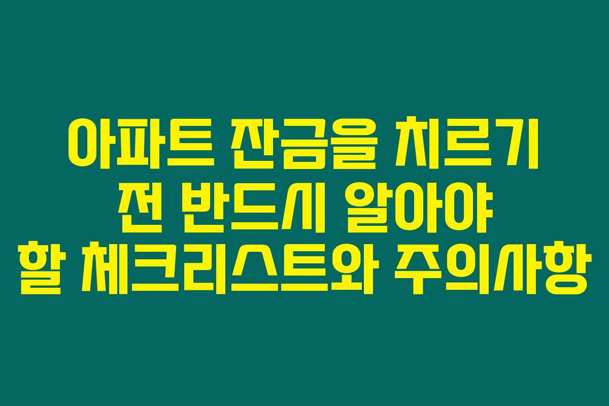 아파트 잔금을 치르기 전 반드시 알아야 할 체크리스트와 주의사항