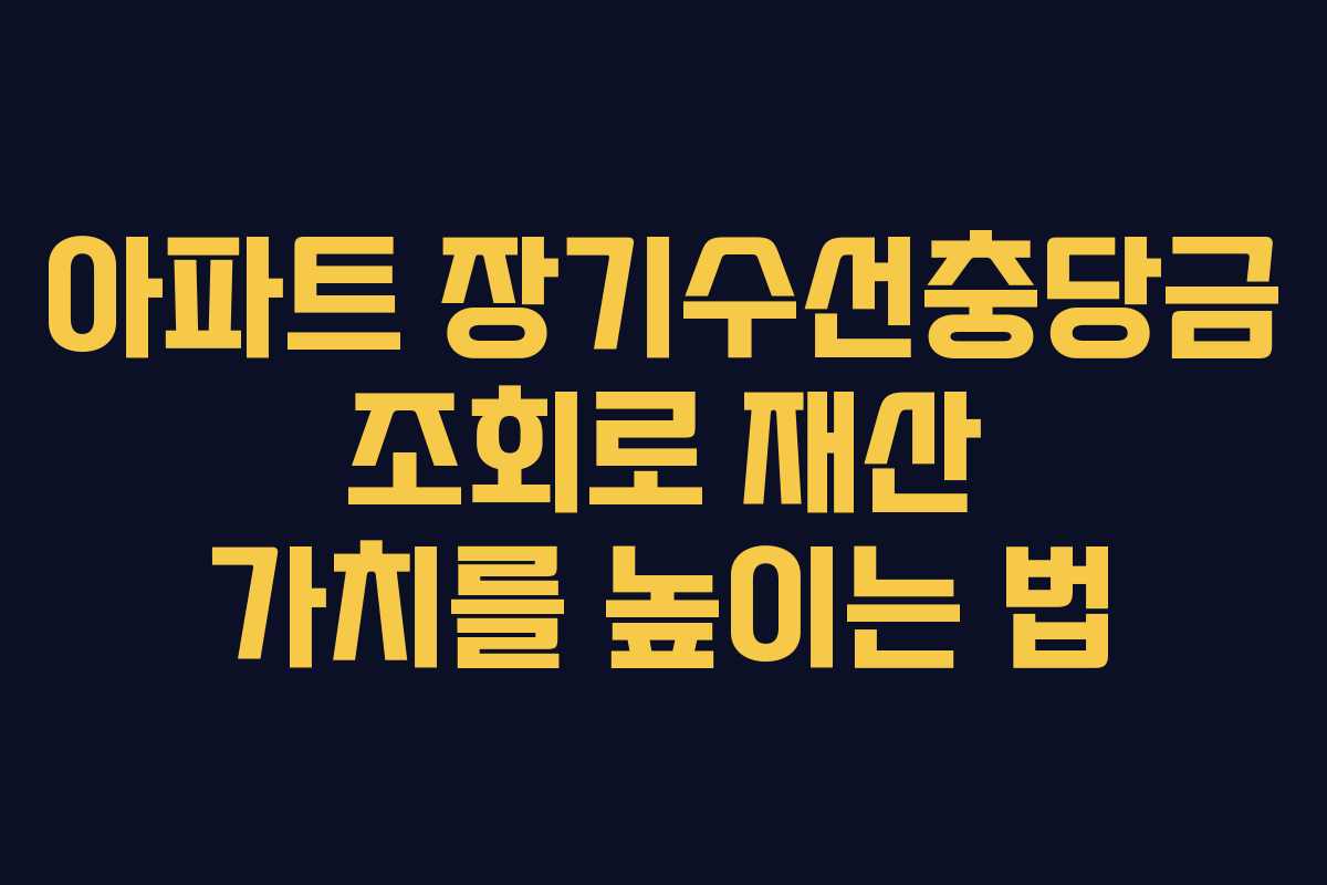 아파트 소유자라면 누구나 재산 가치를 높이고 싶어합니다. 이와 관련하여 아파트 장기수선충당금 조회는 매우 중요한 요소입니다. 이 자금은 아파트의 유지보수와 수선에 필요한 자원을 마련해주며, 아파트의 상태와 가치를 향상시키는 데 큰 도움이 됩니다. 따라서 사전 점검을 통해 예기치 않은 문제로 인한 경제적 손실을 예방할 필요가 있습니다.