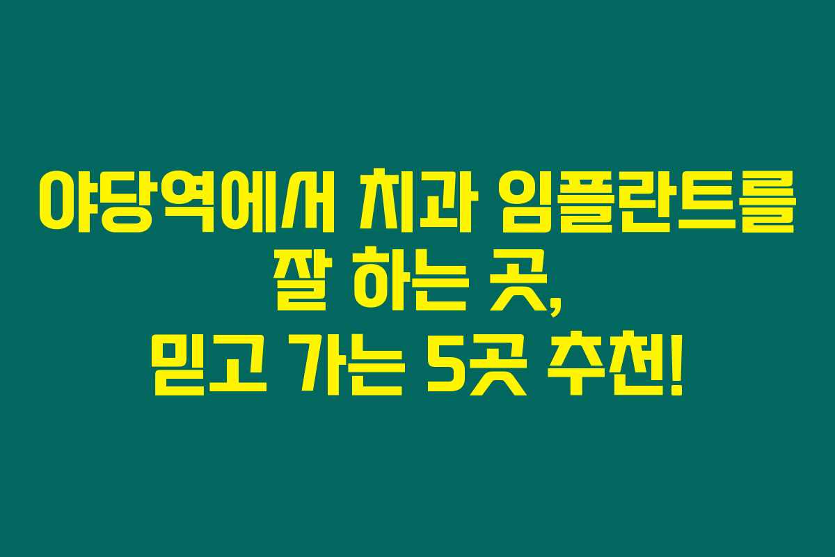 치아 건강은 우리의 일상생활 품질을 좌우하는 중요한 요소입니다. 제가 직접 알아본 바로는 파주 야당역 근처에는 임플란트 분야에서 뛰어난 전문성과 신뢰도를 지닌 치과들이 많더라고요. 특히, 야당역 임플란트를 고려하고 계신 분들이라면 필요한 정보를 미리 체크하는 것이 중요합니다. 아래를 읽어보시면, 임플란트 치료를 위한 잘 알려진 5곳과 가격, 후기, 지원금 정보까지 쉽게 확인할 수 있습니다.
