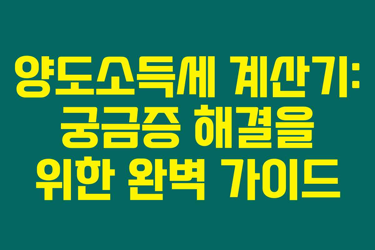양도소득세는 요즘 부동산 거래가 활발해짐에 따라 많은 이들에게 더욱 중요한 이슈가 되고 있습니다. 그래서 이번 포스팅에서는 양도소득세 계산기와 관련된 유용한 정보를 상세히 정리해 보았습니다. 앞으로 부동산 거래를 고려하시는 분들은 미리 예측해 그리고 세금 관련 불이익이 없도록 충분히 준비하시길 바랍니다.