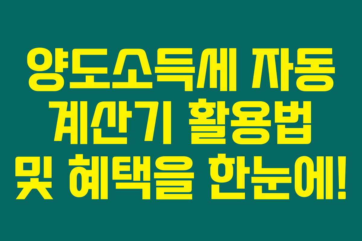 양도소득세에 대해 많은 분들이 궁금하실 텐데요. 특히, 양도소득세 자동 계산기와 그 감면 혜택을 활용해 보다 유익한 정보로 세금 부담을 줄일 수 있는 방법에 대해 설명드립니다. 제가 직접 체크해본 바로는, 양도소득세 계산기 사용법과 다양한 절세 아이디어를 통해 세금을 합리적으로 관리할 수 있다는 사실입니다.