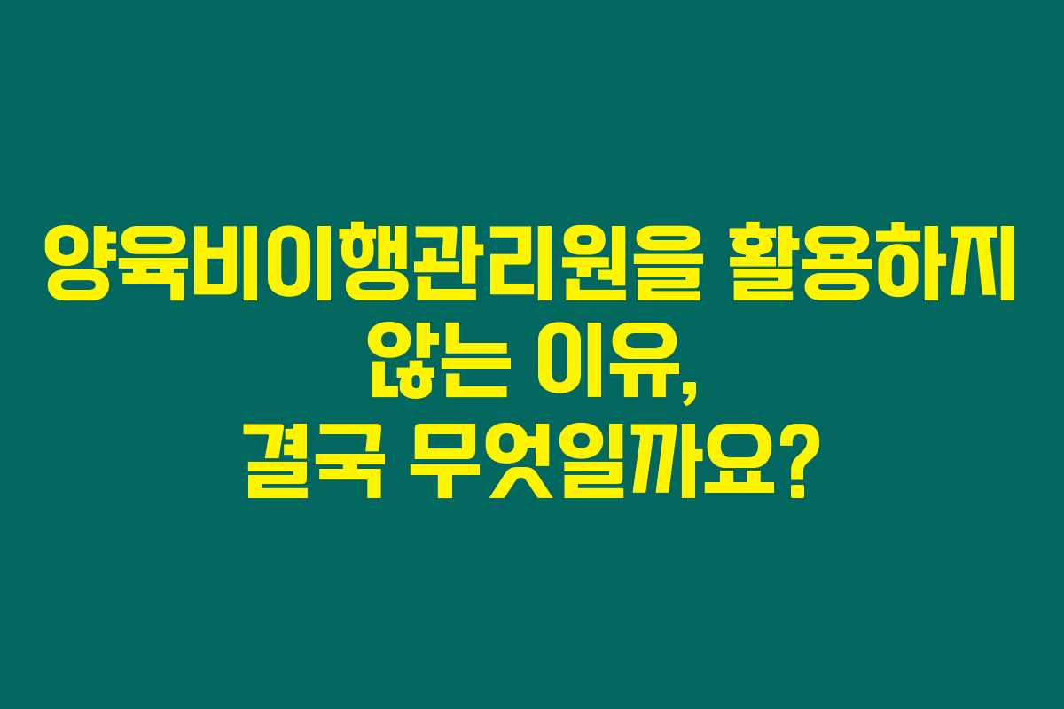 제가 체크해본 바로는 많은 양육자들이 양육비이행관리원을 알고 있음에도 불구하고 실제로 활용하지 않는 이유는 여러 가지가 있답니다. 다양한 이유 속에서 불편함과 두려움이 얽혀 있으며, 이로 인해 양육비 문제는 더욱 심각해질 수 있죠. 아래를 읽어보시면 그 이유와 대처 방법, 그리고 도움을 받을 수 있는 효율적인 경로에 대해 알아보실 수 있을 거예요.