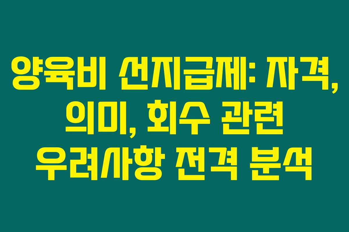 양육비 선지급제: 자격, 의미, 회수 관련 우려사항 전격 분석