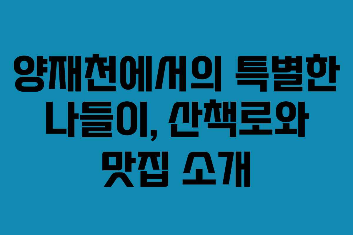 - 양재천에서의 특별한 하루를 즐길 수 있는 방법