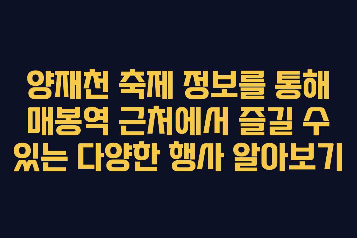 - 양재천 축제를 즐기기 위한 실전 가이드