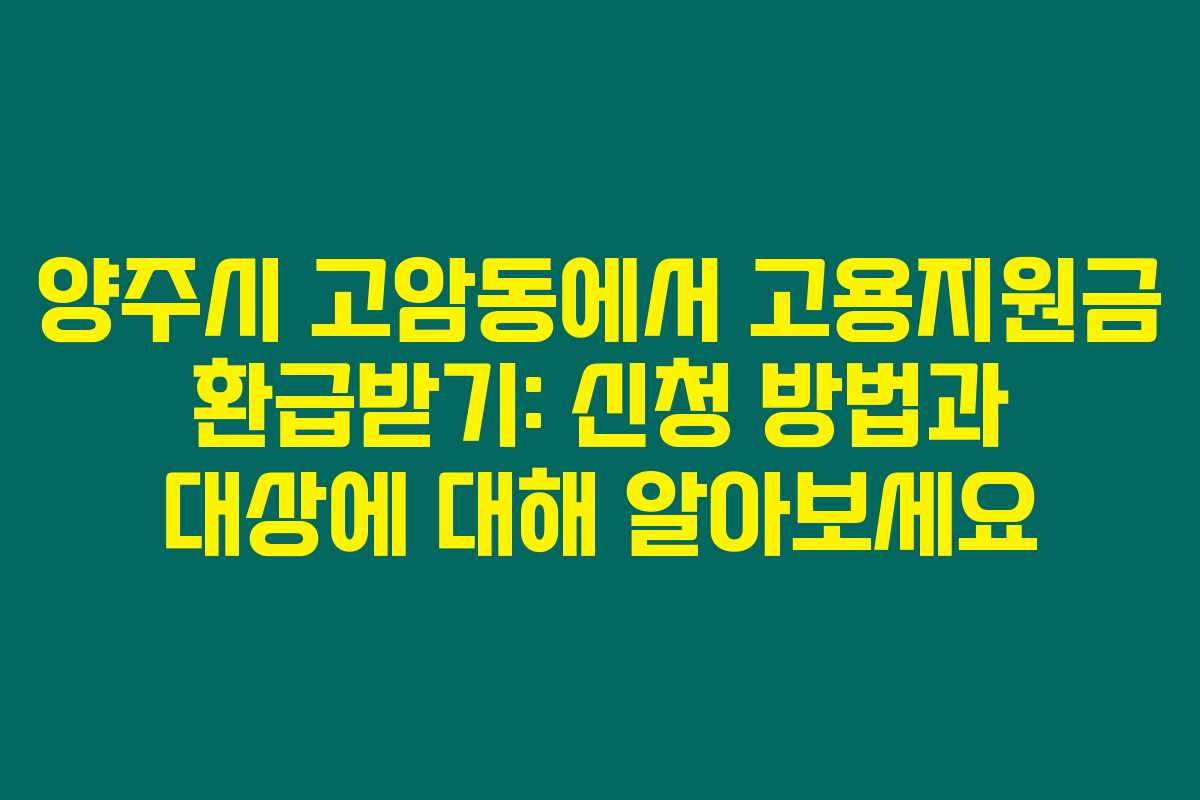 제가 직접 알아본 바로는 양주시 고암동에서의 고용지원금 환급 신청 과정은 여러 사업주들과 근로자에게 중요한 정책이랍니다. 이 지원금을 통해 경영 안정화 및 경제 활성화에 큰 도움이 될 수 있어요. 아래를 읽어보시면 고용지원금 환급의 신청 방법, 수혜 대상, 그리고 필요한 서류에 대해 자세히 알 수 있습니다.