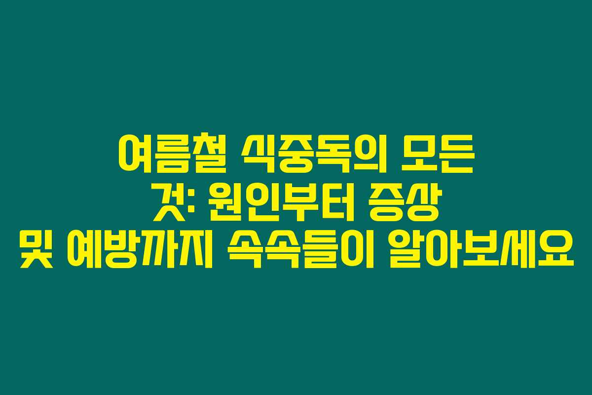- 여름철 식중독 증상, 신속한 대처가 중요해요