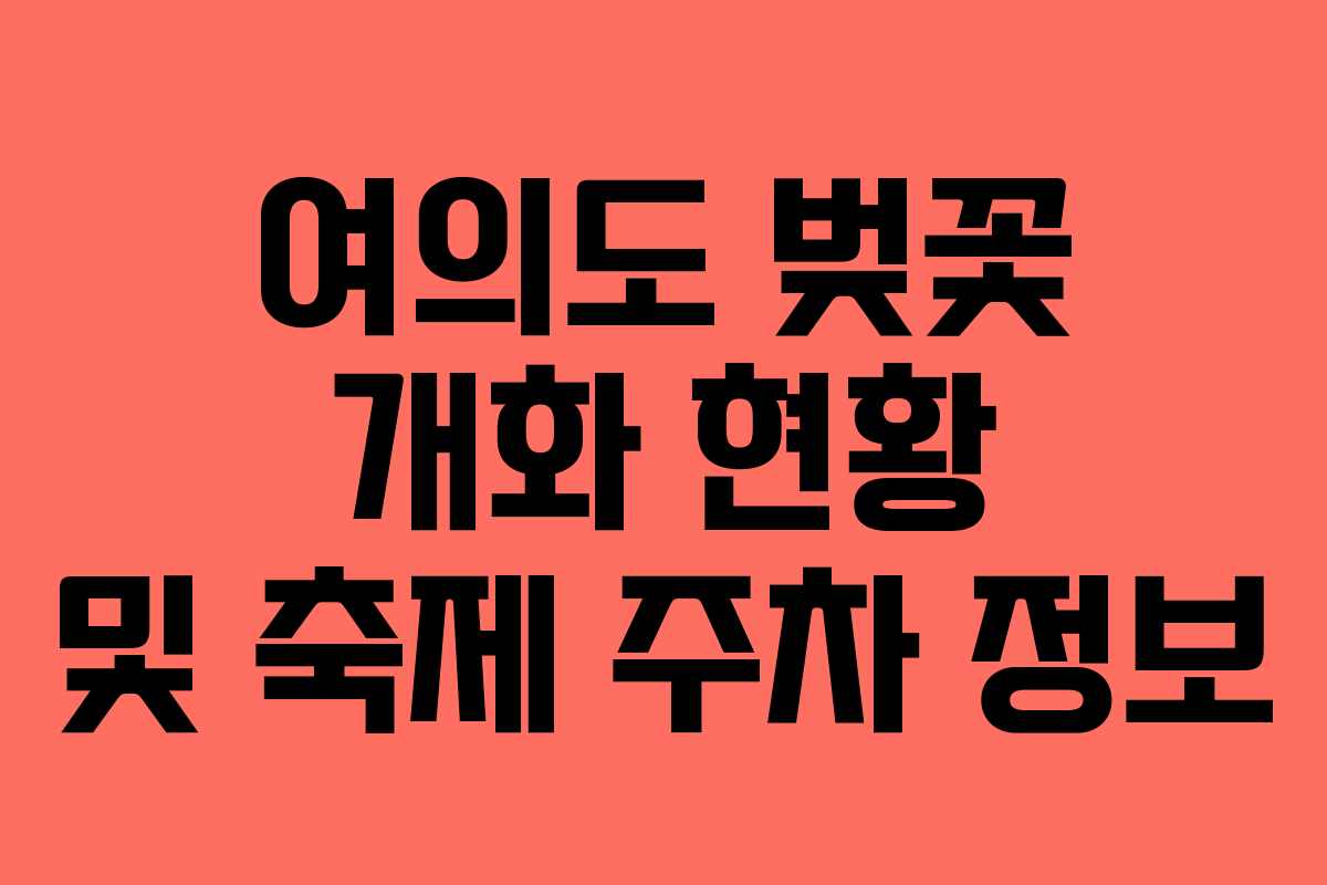 여의도 벚꽃축제 2026년 기본 정보 및 개화 현황