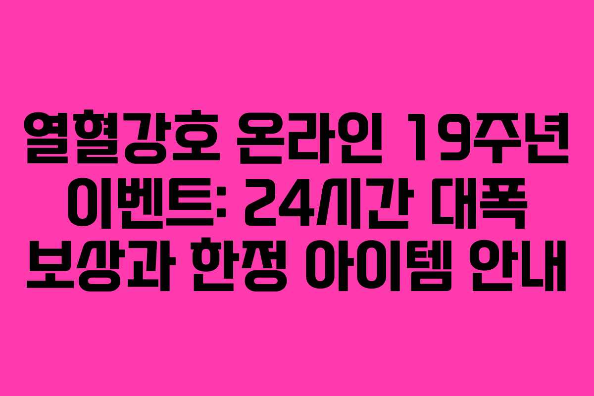 아래를 읽어보시면 열혈강호 온라인의 19주년을 기념하는 대규모 이벤트의 주요 내용, 참여 방법, 드롭 아이템, 케이크 버프와 퀘스트 보상까지 한눈에 확인할 수 있습니다.
