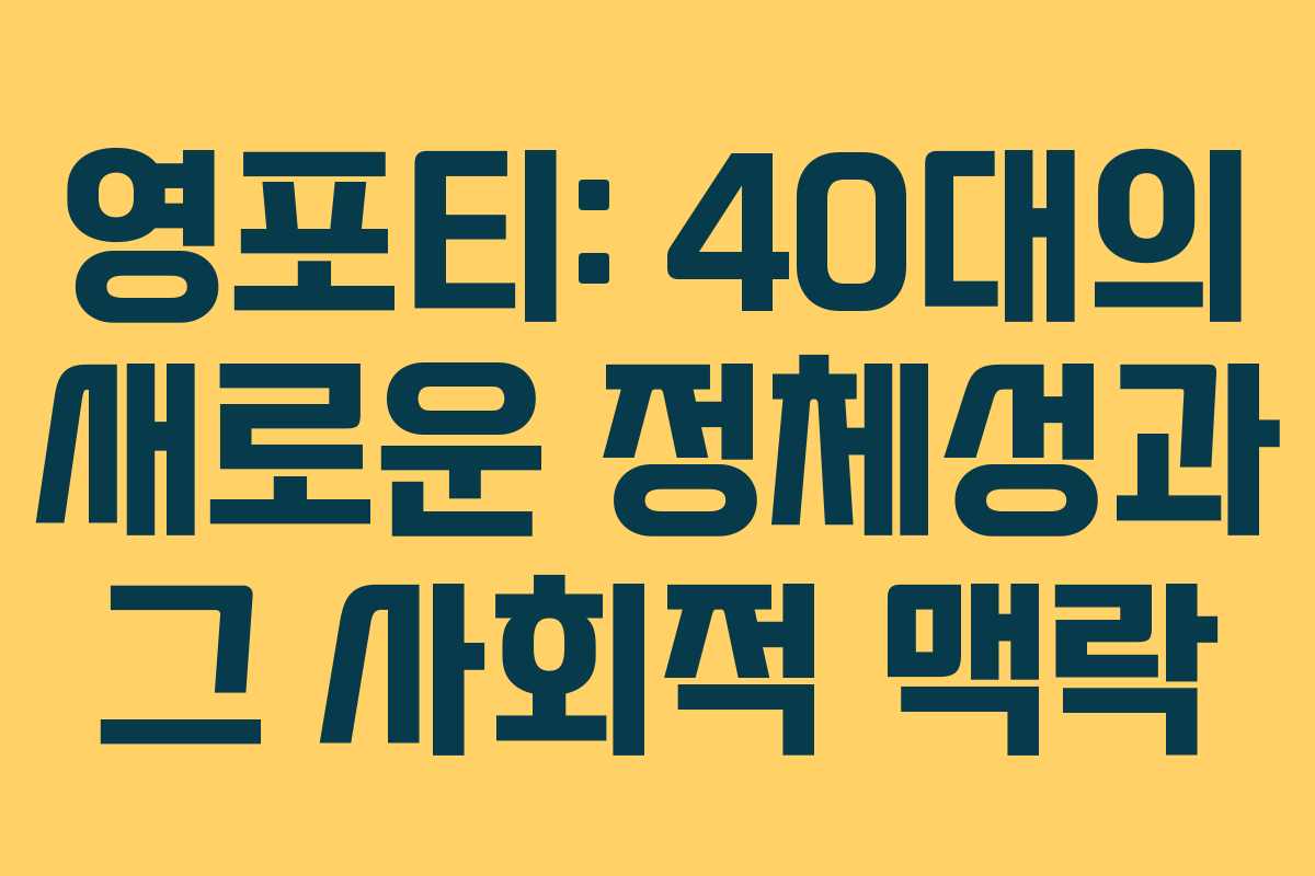 영포티는 젊은 감각과 자기계발을 중시하는 40대의 새로운 정체성을 나타내는 긍정적인 신조어로 시작됐습니다. 그러나 최근에는 부정적 의미로 변질되기도 하여, 이를 극복하기 위해서는 나이에 얽매이지 않고 자신의 길을 주체적으로 살아가는 태도가 필요합니다.